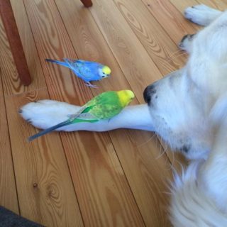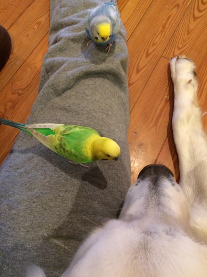 そんな鳥と暮らし始め、その後には大型犬を迎えた。