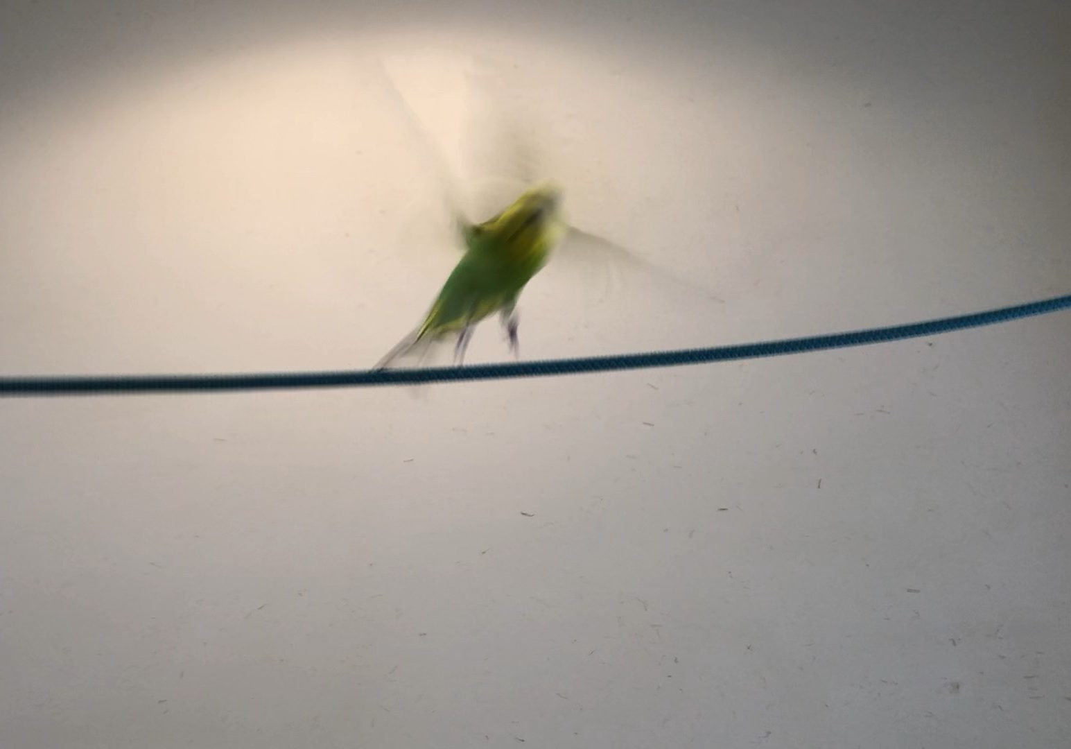 さて、家の中で歩く、走る、床にじっと立ち止まっていることが多い我が家のセキセイインコ、もちろん元気よく飛び回りもして、座ったり寝ていたら羽根をわずかにかすめてくることもあるし、止まりにくる。